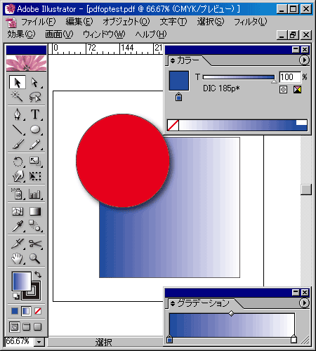 PDF に特色とオーバープリントが含まれるときの処理方法はどうしていますか。例えば、以下のようなデータのとき、どのように出力しますか。